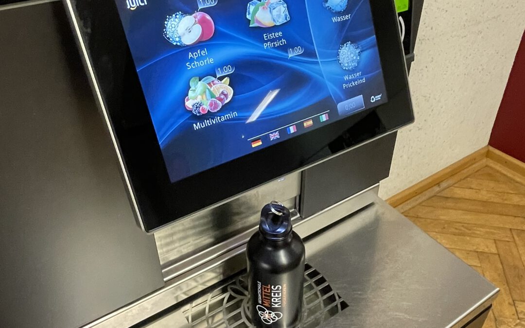 Dank intensiver Bemühungen der Elternpflegschaft und in Zusammenarbeit mit dem Mensabetriebs- und Förderverein konnte dieser Saftautomat angeschafft werden, um so auch dazu beizutragen, dass unnötiger Müll durch Getränkeverpackungen vermieden werden kann.